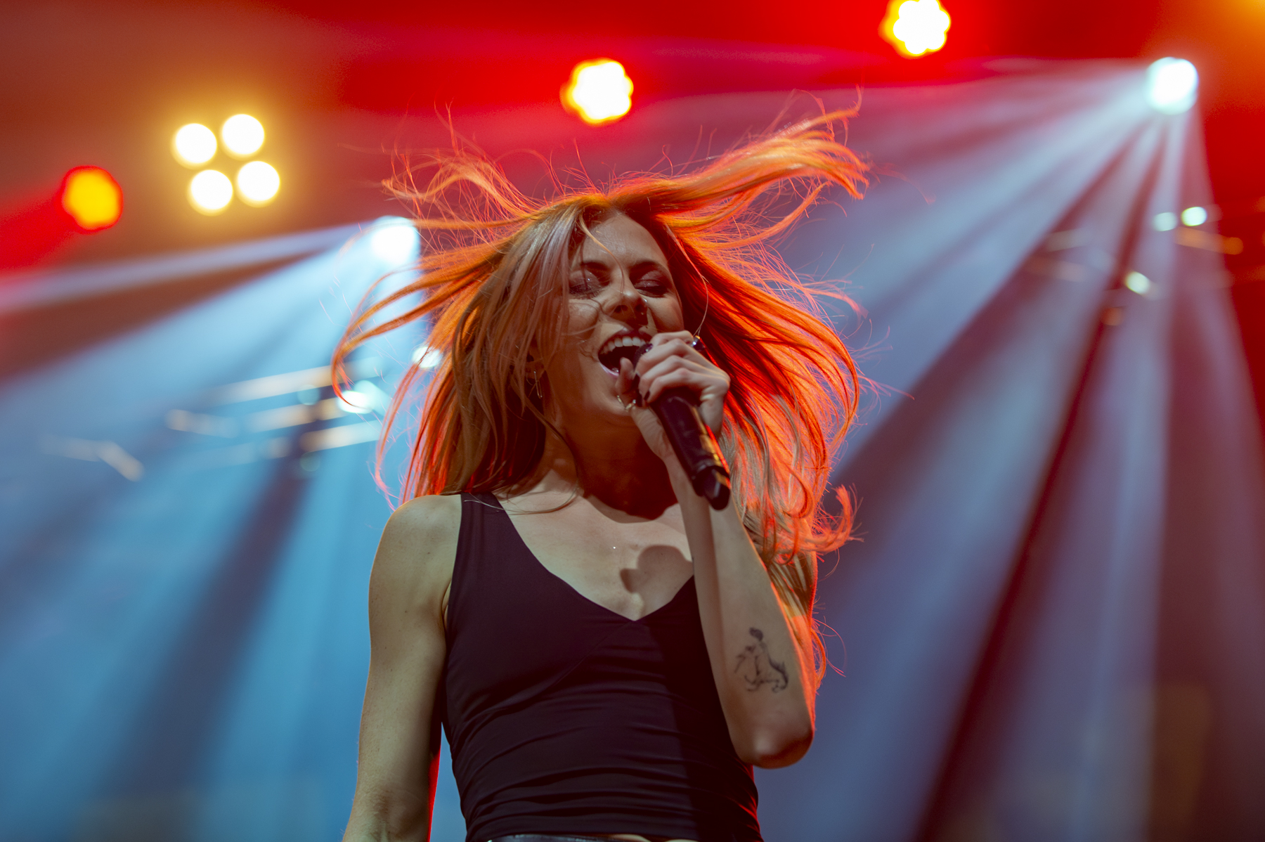 Den Anfang machte um exakt 19:00 Uhr die fantastische Taylor Acorn. Sie hat eine unglaubliche Reise hinter sich. Ursprünglich startete sie in der Country-Szene von Nashville. Doch gestern bewies sie, dass ihr Herz für den Pop-Punk schlägt. Ihre Songs sind angenehm direkt und handwerklich hervorragend. Als sie „Burning House“ anstimmte, gingen im ganzen Palladium die Lichter an. Es war ein magischer Moment der Ruhe vor dem Sturm. Taylor wirkte auf der Bühne extrem nahbar. Sie winkte einzelnen Fans in der ersten Reihe zu. Das sorgte sofort für eine sehr persönliche Atmosphäre. Jeder in der Halle spürte ihre Leidenschaft.