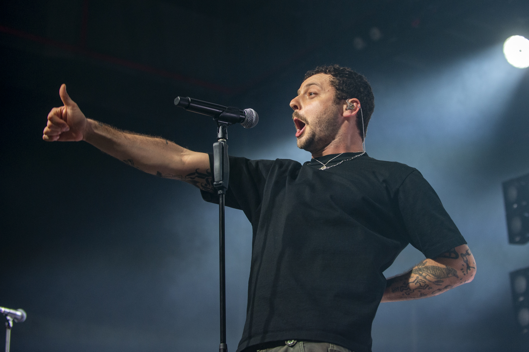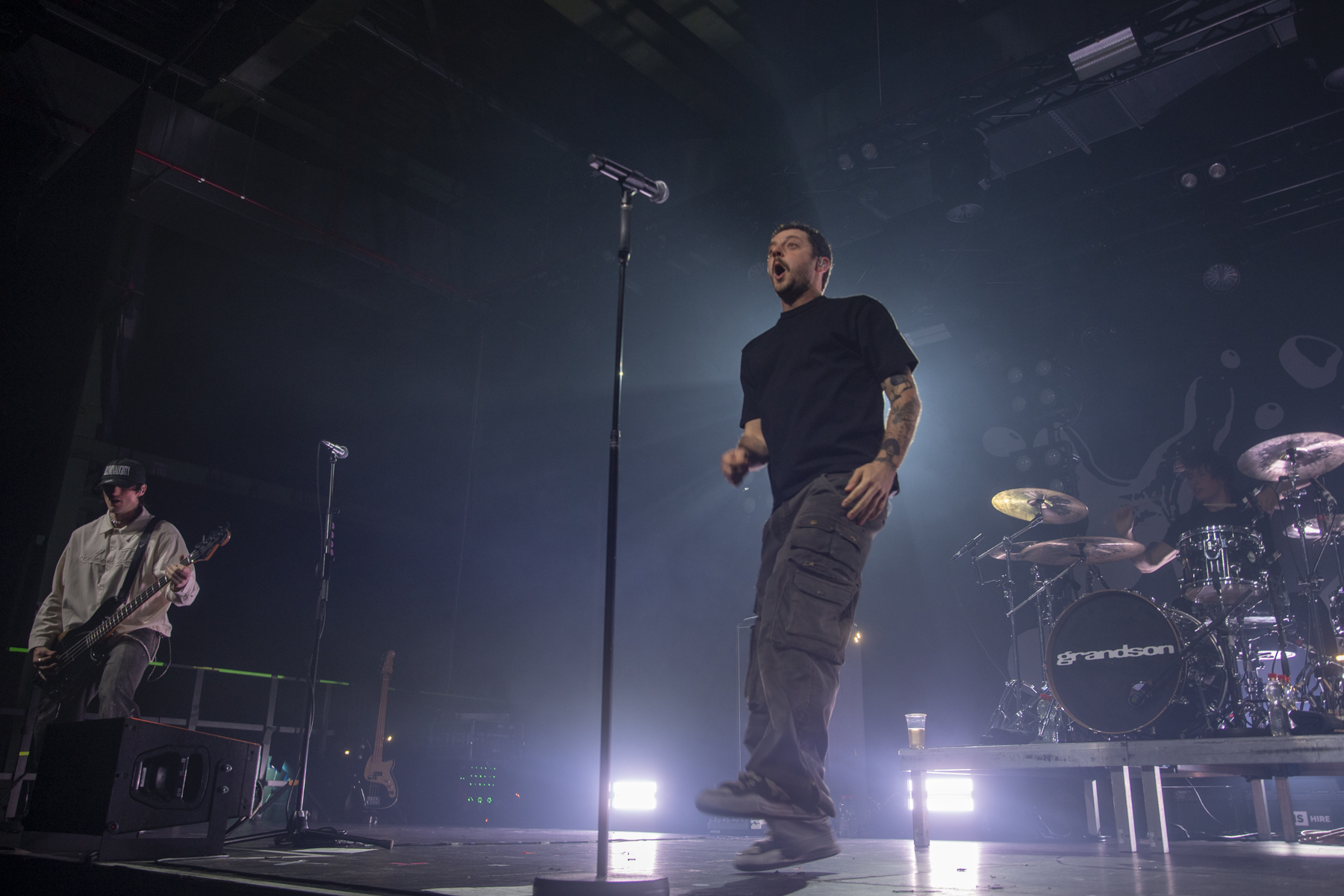 Kurz nach 21:00 Uhr explodierte die Stimmung endgültig. Nach einem Intro von Rage Against the Machine startete Grandson direkt mit „AUTONOMOUS DELIVERY ROBOT“ durch. Die Show war eine Achterbahnfahrt der Gefühle. Das neue Album „Inertia“ wurde komplett gespielt und live in ein brachiales Gewand gehüllt. Besonders stark war das Nu-Metal-Upgrade des Bob Dylan Covers „Masters of War“. Zwischen den Songs bezog Grandson unmissverständlich Stellung gegen Rassismus, Homophobie und politische Ungerechtigkeit. „If for you to feel bigger, you need somebody else here to feel like they can’t be themselves, then just get the fuck out“, lautete seine klare Ansage an das Publikum, die mit lautem Jubel quittiert wurde.