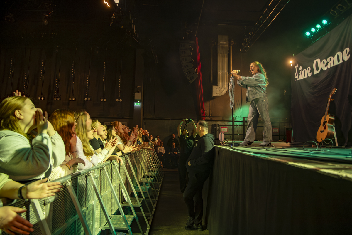 Direkt im Anschluss übernahm Áine Deane die Bühne. Zusammen mit einem Begleitmusiker beherrschte sie ab dem ersten Ton das Publikum. Mit handgemachten Songs wie „handmadeowns“, „Hopeless“ oder dem rührenden „a song for my dad“ begeisterte sie die Menge. Besonders ihre Art, zu jedem Lied die Entstehungsgeschichte zu erzählen, schuf eine tiefe Verbindung. Das Kölner Publikum dankte es ihr mit großer Textsicherheit und lautem Applaus.