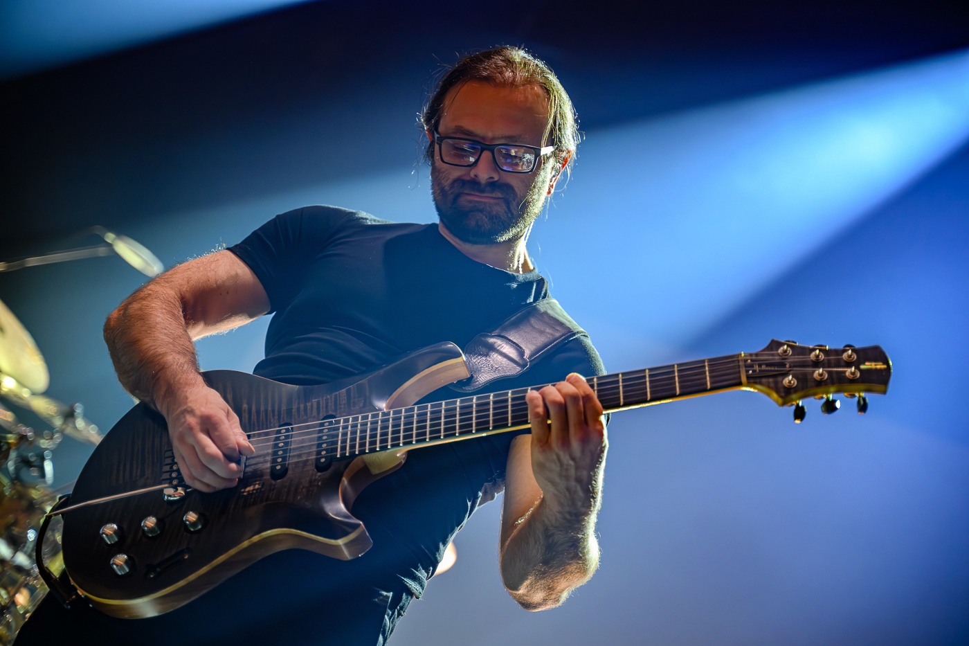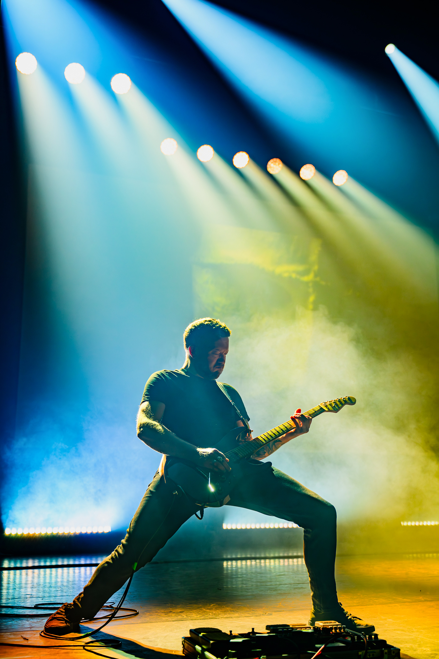 Hinter der Band war eine Leinwand platziert, auf der Clips, Plattencover und Videos präsentiert wurden. Diese visuellen Elemente ergänzten das Bühnenbild auf dezente Weise, ohne jemals von der musikalischen Darbietung abzulenken. Vom Licht her war es das perfekte Zusammenspiel zwischen Musik und Beleuchtung. Das Konzert war klug in zwei Akte unterteilt. Im ersten Set widmete sich die Band fast vollständig ihrem Werk „The Phantom Void“. Songs wie „Mare“ und „The Spiral“ bauten eine Spannung auf, die den Saal förmlich elektrisierte. Die Musiker agierten mit einer Präzision, die verdeutlichte, warum sie zur Speerspitze des instrumentalen Rock gehören. Nach dem emotionalen Höhepunkt „The Very Last Day“ gab es eine kleine Pause. Diese Unterbrechung wurde genutzt, um das Gehörte mit Freunden zu besprechen. Alle waren sich einig: Es war große Kunst.