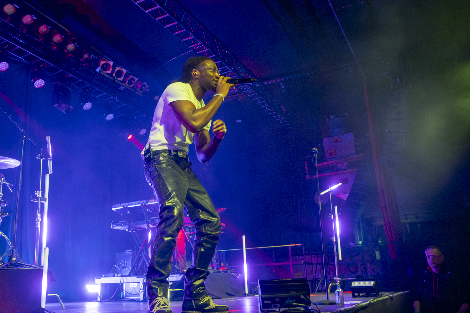 Der Weg zum heutigen Musikerlebnis war für viele Fans eine echte Geduldsprobe. Auch mir machte die Bahn einen dicken Strich durch die Rechnung. Obwohl ich extra einen Zug früher genommen hatte, baute dieser auf der Reise so viel Verspätung auf, dass ich das Odeal Konzert Köln 2026 fast verpasst hätte. Ein viel zu langes DJ-Set vor dem eigentlichen Auftritt rettete mich jedoch in letzter Sekunde. So schaffte ich es gerade noch rechtzeitig, den Voract Karri zu sehen und immerhin drei Fotos vom Künstler zu machen. Das Warten hatte sich gelohnt, denn die Vorband hatte es absolut in sich. Fast jeder im Saal kannte die Lieder von Karri auswendig. Ob bei „Oakland“ oder „Impromptu“, die Stimmung in der Live Music Hall war bereits am Siedepunkt, bevor der Hauptact überhaupt die Bühne betrat. Als Odeal schließlich, begleitet von einem Keyboarder und einem Drummer, das Rampenlicht betrat, verwandelte sich Ehrenfeld endgültig in ein Epizentrum moderner R&B-Kultur.