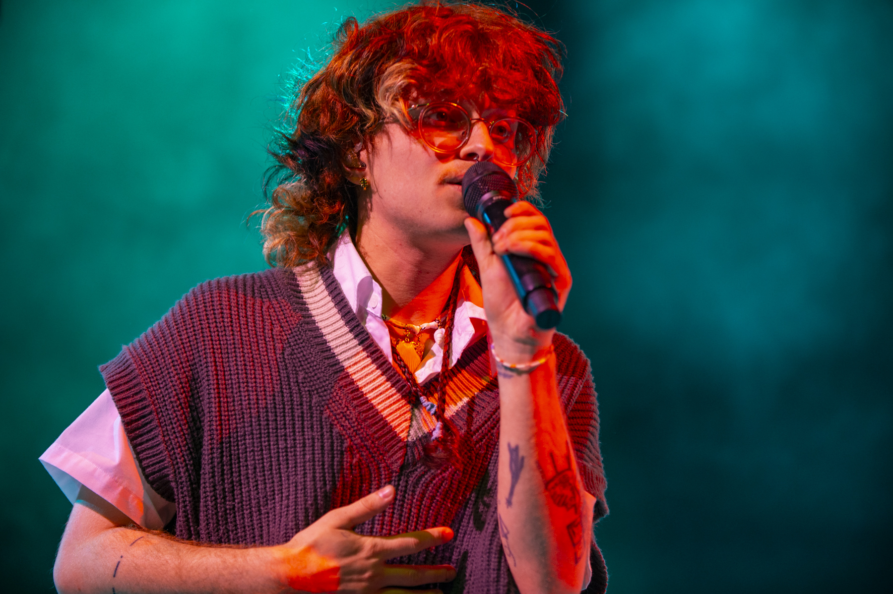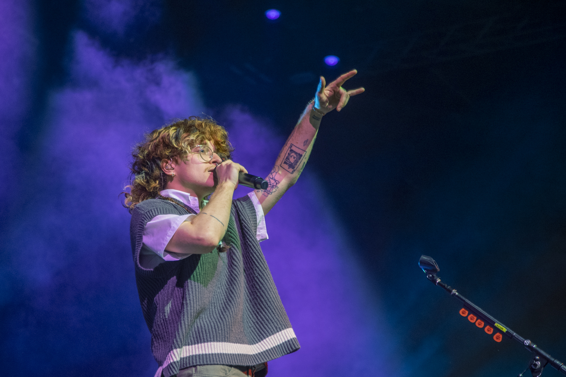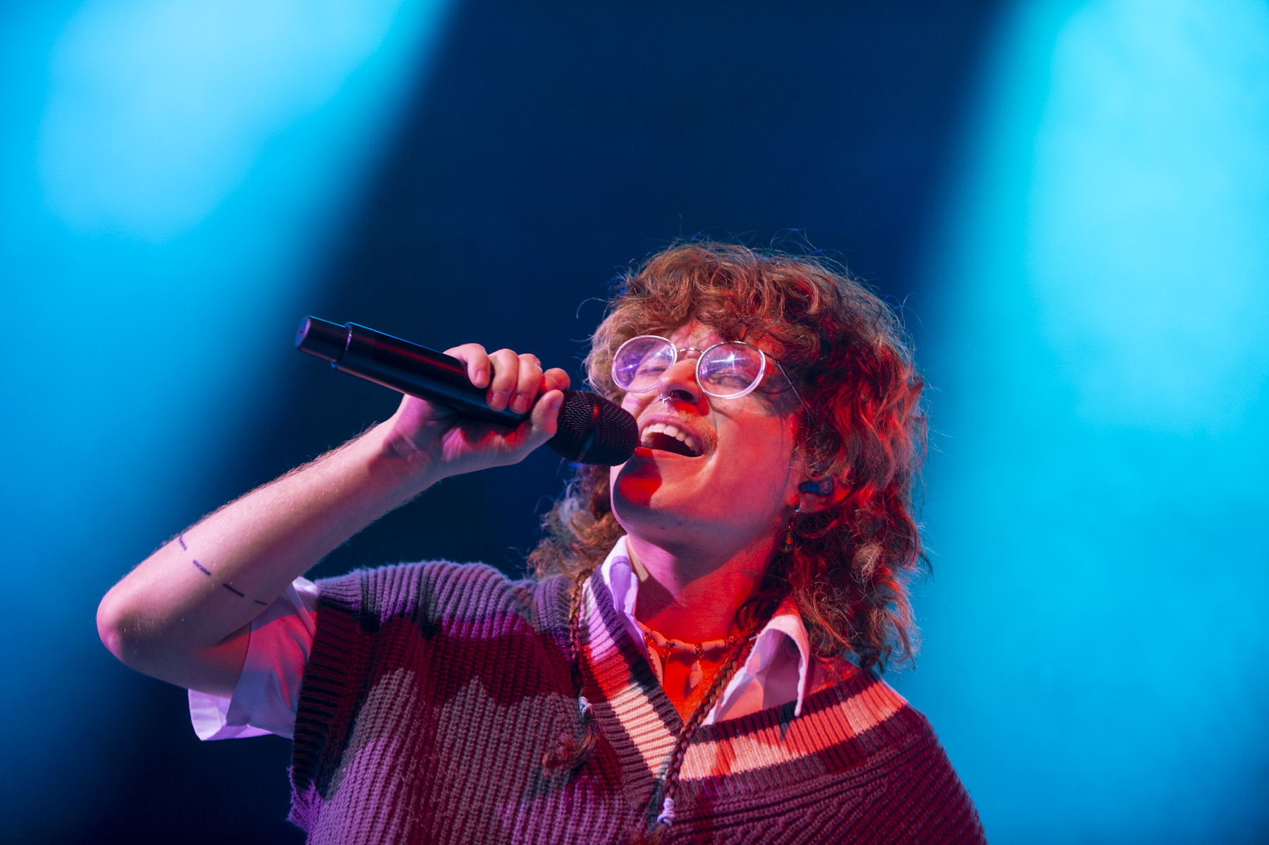 Nach dem Sturm kam die Stille – und sie war wunderschön. Cavetown, das Projekt des britischen Songwriters Robbie Skinner, brachte einen fast schon magischen Moment in diesen Abend. Zwischen den lauten, energiegeladenen Sets wirkte seine Musik wie ein tiefes Atemholen. Songs wie “Home”, “Boys Will Be Bugs” und “Deviltown” schwebten förmlich durch die Luft, begleitet von sanftem Gitarrenspiel und melancholischen Melodien. Das Publikum lauschte andächtig – manche saßen sogar kurz auf dem Boden, um einfach zu fühlen.