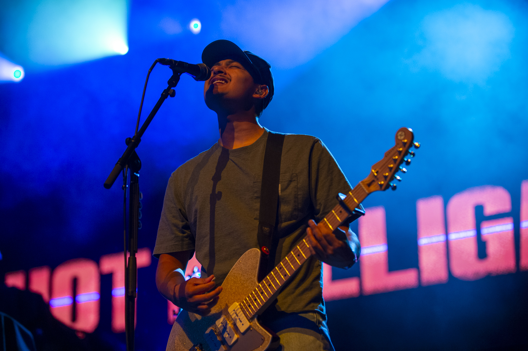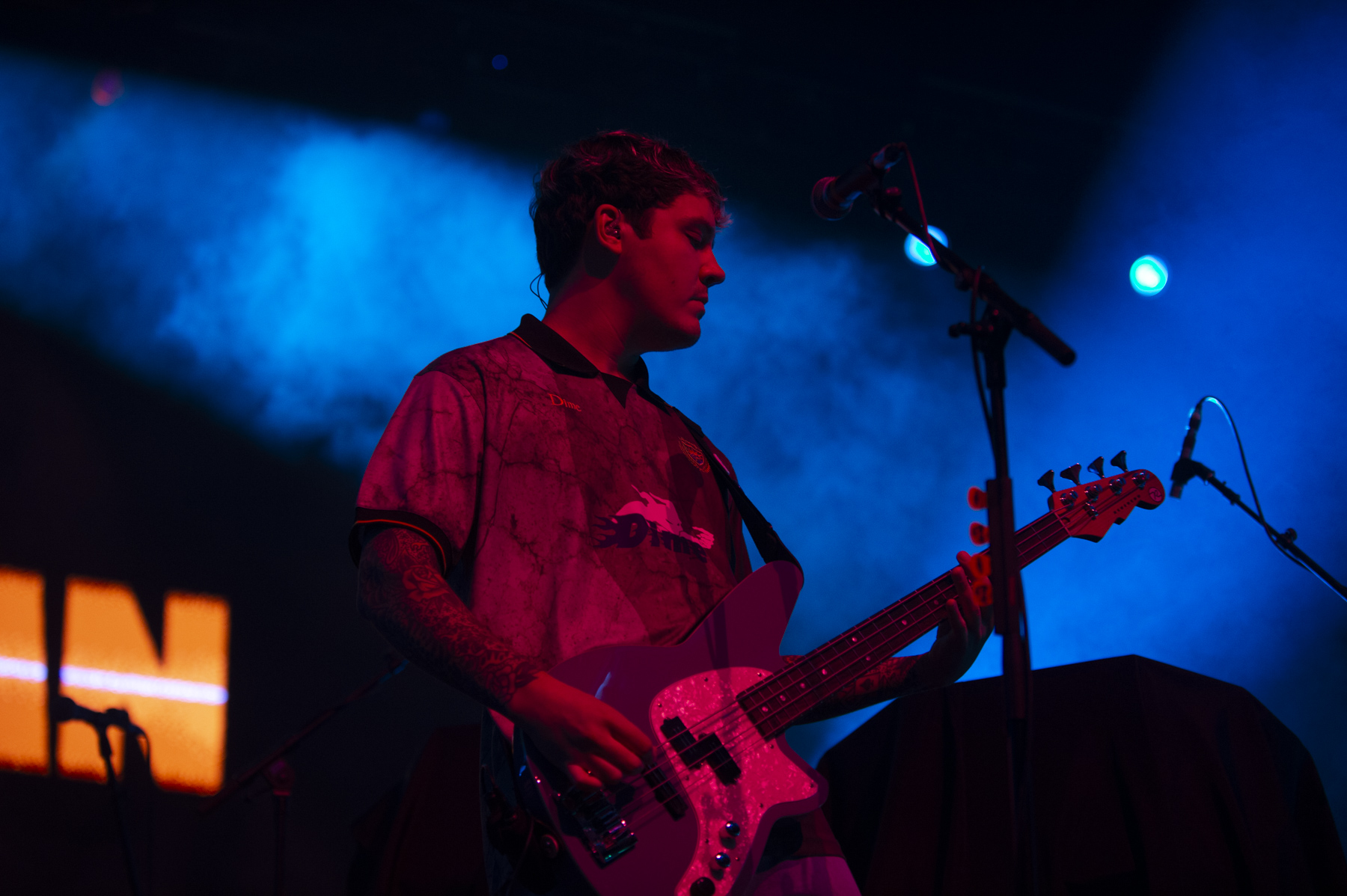 Dann wurde es laut – richtig laut. Hot Mulligan aus Michigan übernahmen die Bühne mit einer Energie, die sofort übersprang. Schon nach dem ersten Song war klar: Diese Jungs sind gekommen, um die Halle auf Betriebstemperatur zu bringen. Ihr Sound ist eine explosive Mischung aus Midwest-Emo, Pop-Punk und Post-Hardcore – chaotisch, aber präzise. Besonders Sänger Tades Sanville war eine Wucht: Er schrie, lachte, rannte, machte Witze („In Deutschland klingt ‘Pierce’ wie ‘Piss’, also heißt ihr jetzt ‘Piss The Veil’!“) und schien das Publikum in Sekundenschnelle für sich zu gewinnen. Songs wie “Equip Sunglasses”, “Shhhh! Golf is On” und “Drink Milk and Run” sorgten für erste Moshpits – und für viele überraschte Gesichter, die offensichtlich nicht mit dieser Intensität gerechnet hatten. Hot Mulligan waren laut, roh und ehrlich – das perfekte Gegenstück zu den feinen Nuancen von Crawlers. Sie weckten uns auf, rüttelten uns wach – und ließen die Halle vibrieren.