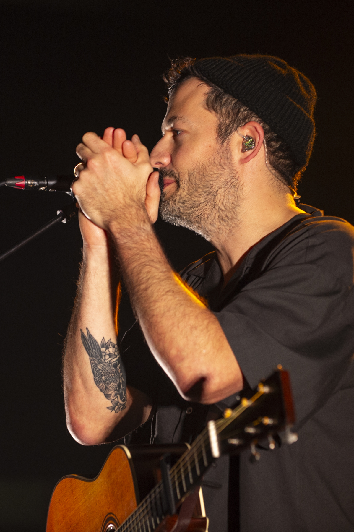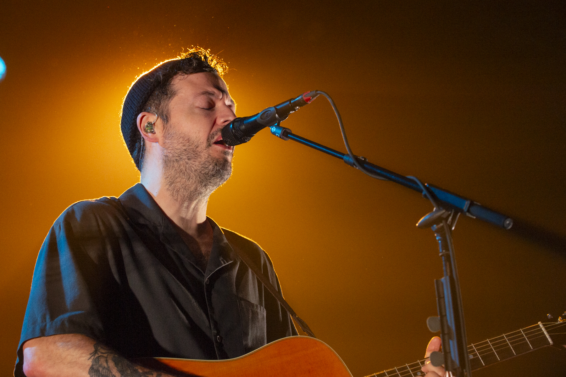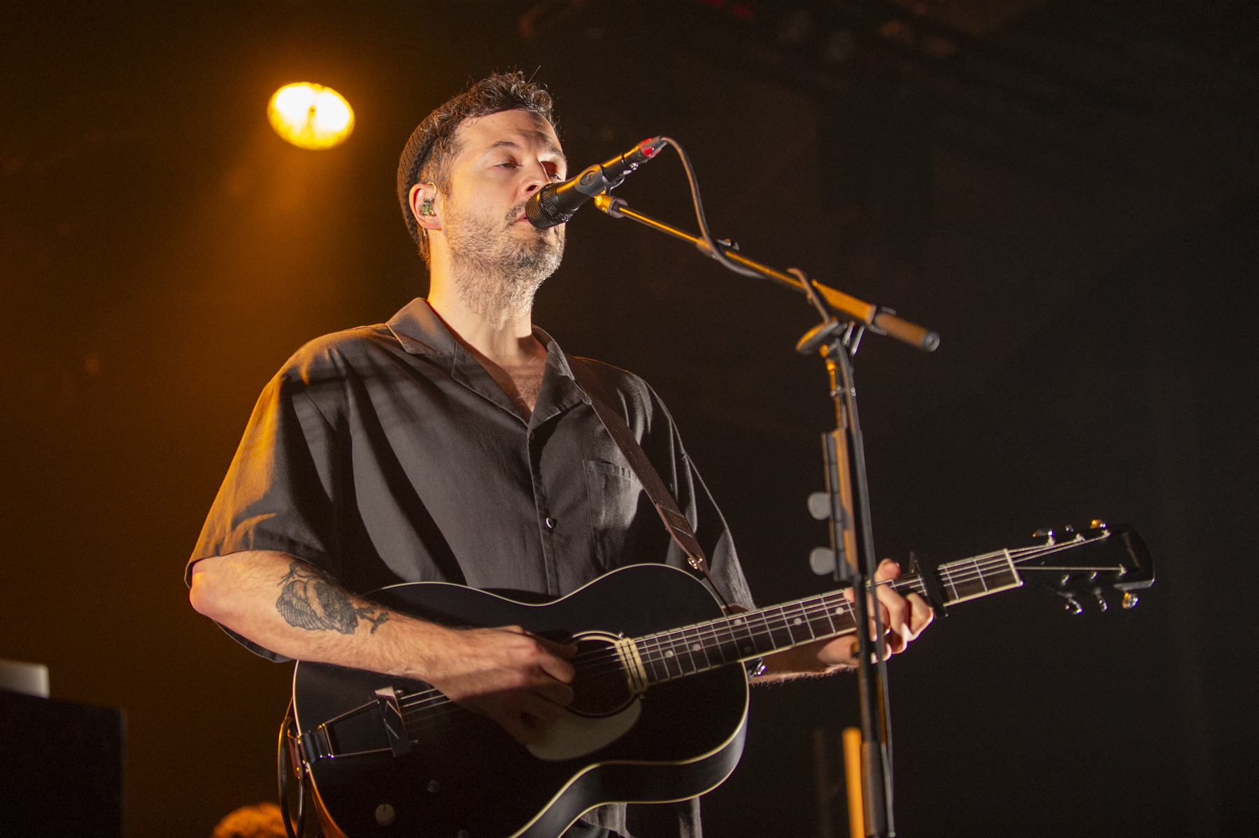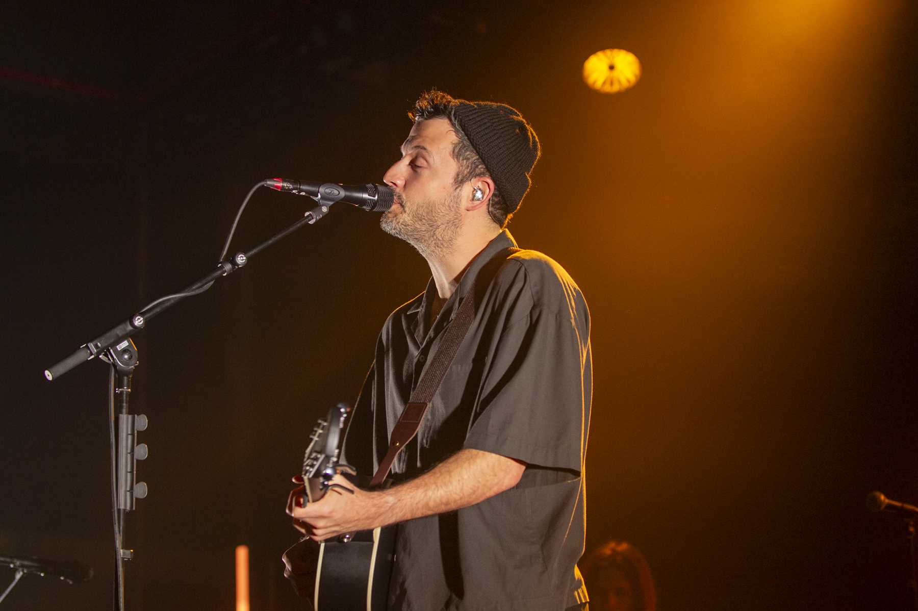Als SYML schließlich die Bühne übernahm, wurde schnell klar, dass Brian Fennell für Köln eine ganz besondere Auswahl an Songs getroffen hatte. Er eröffnete das Set mit „Carry No Thing“ und zog die Zuschauer direkt in seinen Bann. Ein früher Höhepunkt war die Interpretation von „Mister Sandman“, die in seiner Version eine völlig neue, mystische Tiefe bekam. Auch seine Hommage an Billie Eilish mit „when the party’s over“ sorgte für absolute Stille im Raum. Die Dynamik zwischen leisen Momenten wie „Meant to Stay Hid“ und kraftvolleren Stücken wie „Fear of the Water“ war perfekt austariert. Jedes Lied schien eine eigene Geschichte zu erzählen, die Fennell mit seiner unverwechselbaren Stimme zum Leben erweckte.