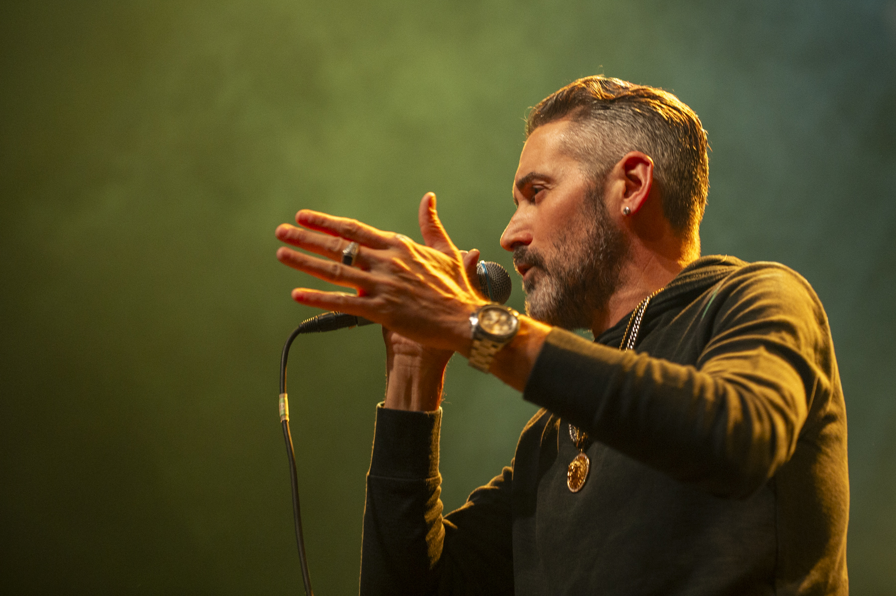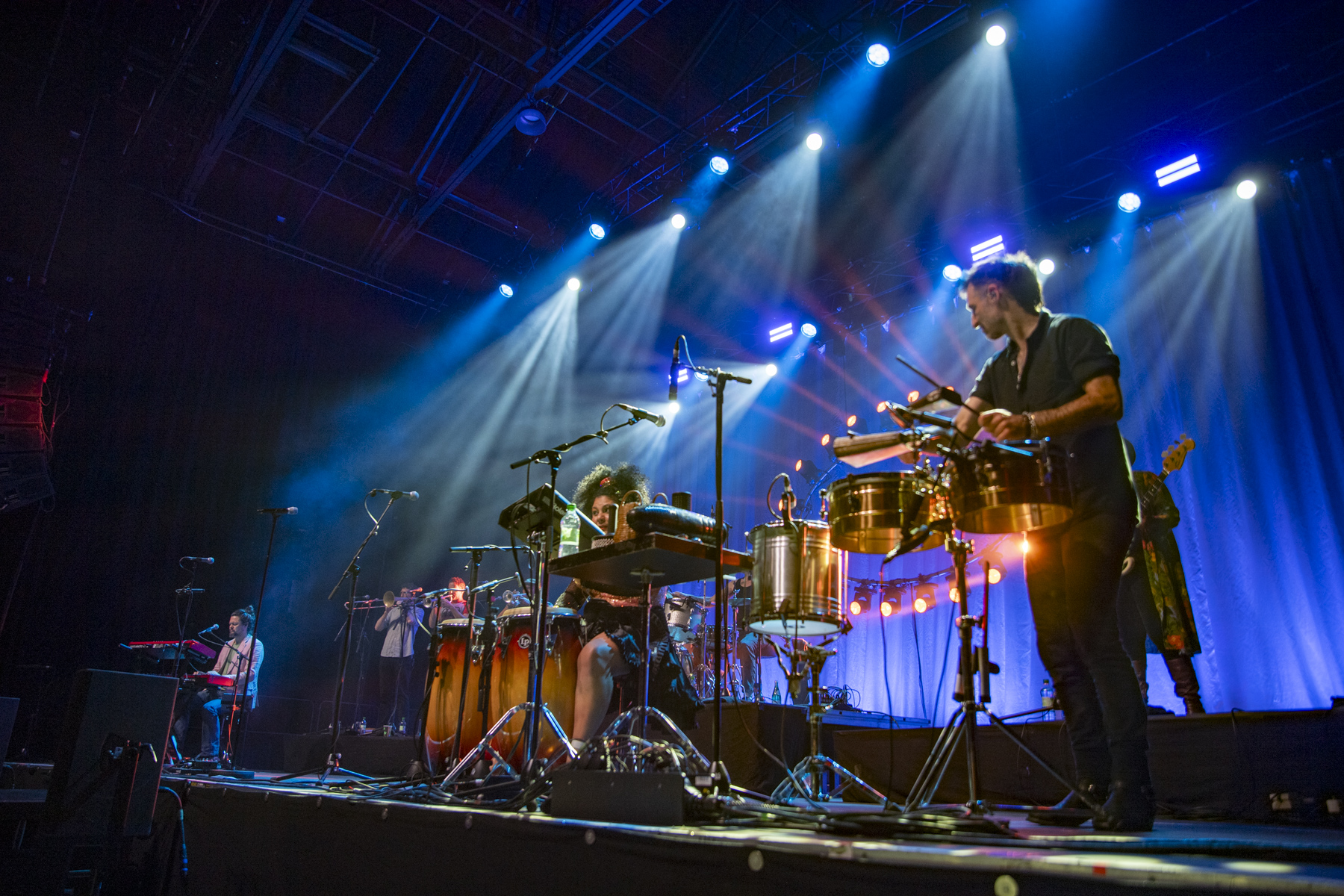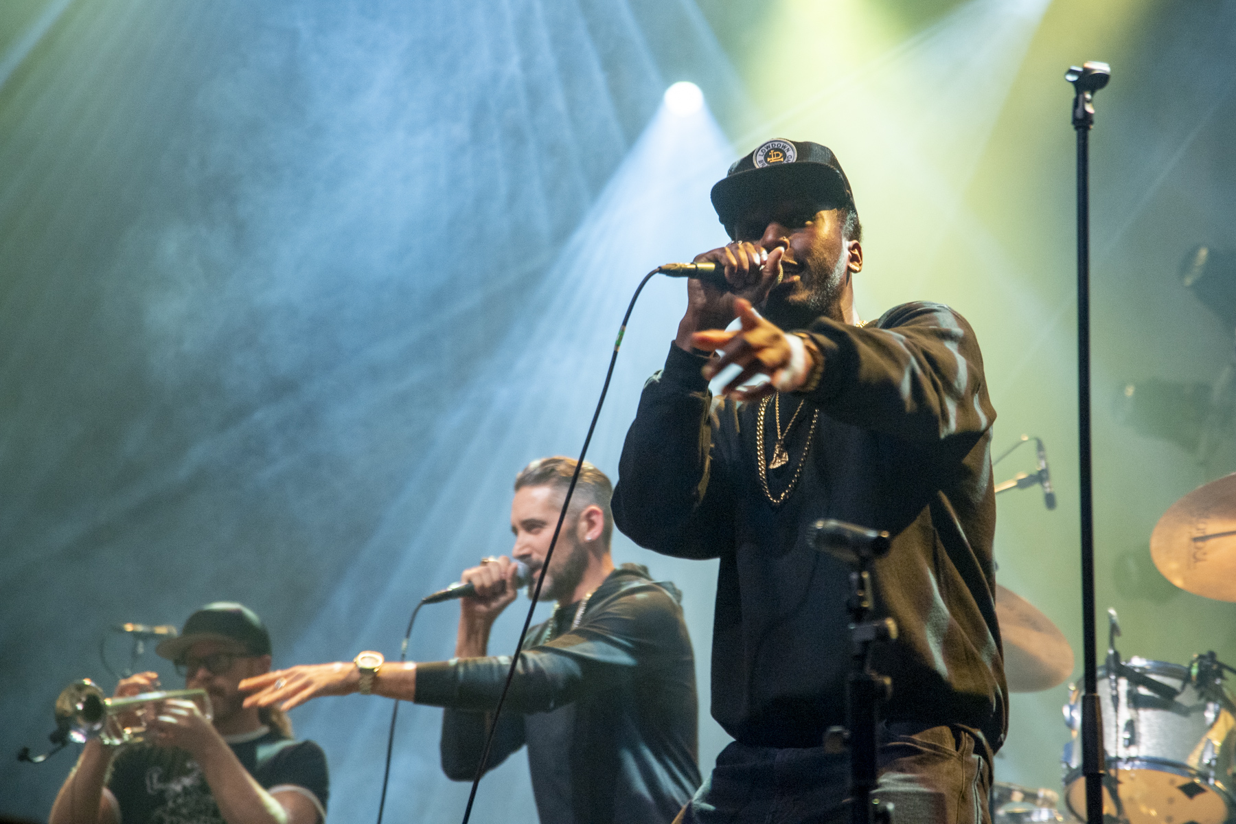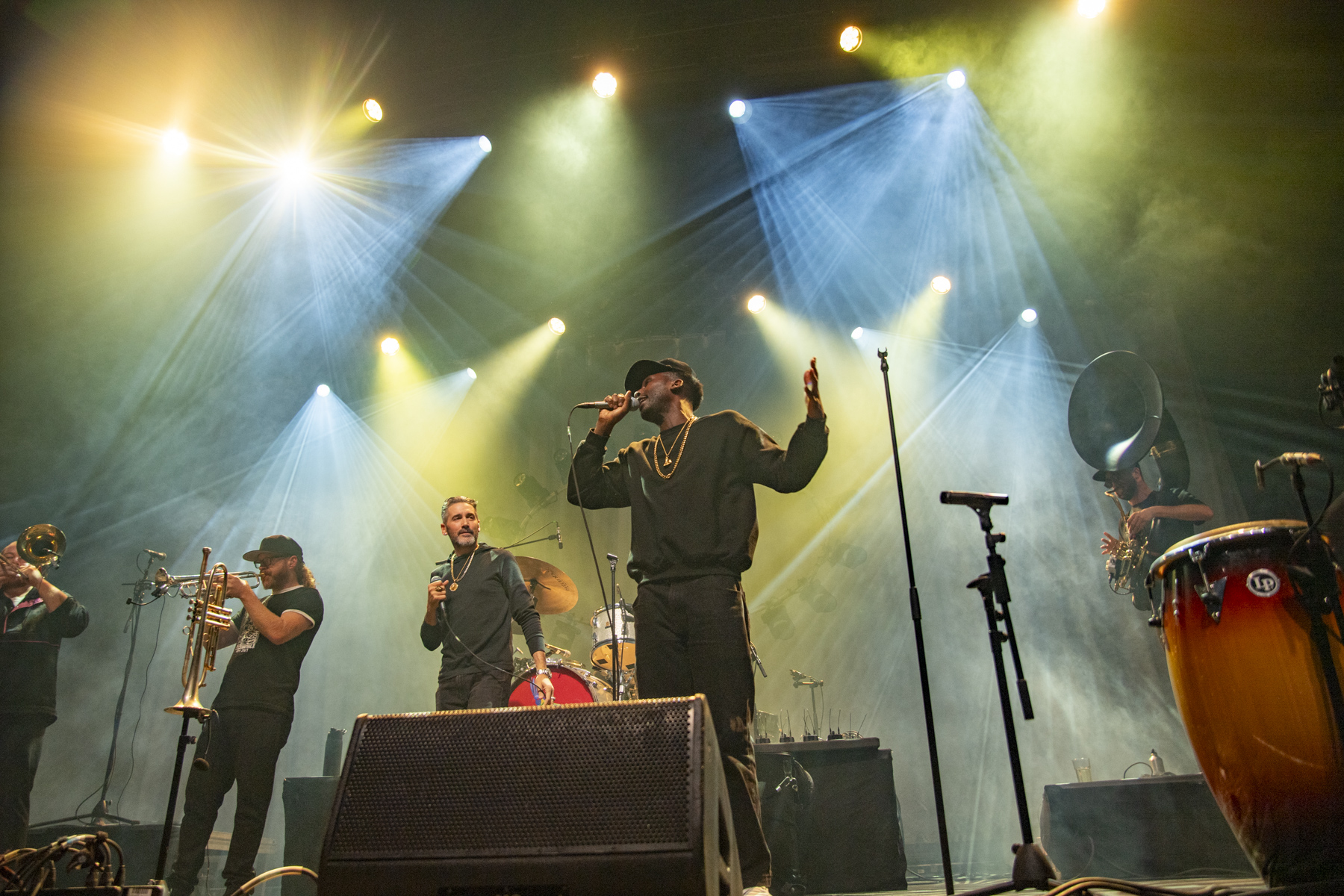 Pünktlich um 19:00 Uhr heizte die Lowdown Brass Band aus Chicago das Publikum ein. Sieben Musiker, kein einziges Saiteninstrument, dafür jede Menge Energie, Funk, HipHop, Jazz und ein Hauch Reggae. Anfangs wirkte der Sound noch etwas chaotisch: die Drums dröhnten, die Bläser waren kaum hörbar, der Gesang fast untergegangen. Doch schon nach wenigen Minuten war klar: Diese Band hat den Dreh raus. Das Sousafon lieferte ein fettes Bassfundament, die mehrstimmigen Bläsersätze sorgten für Spannung und Bewegung – und die Halle begann, im Takt zu wippen. Ein grandioses Warm-up, das perfekt auf die Hauptband vorbereitete.