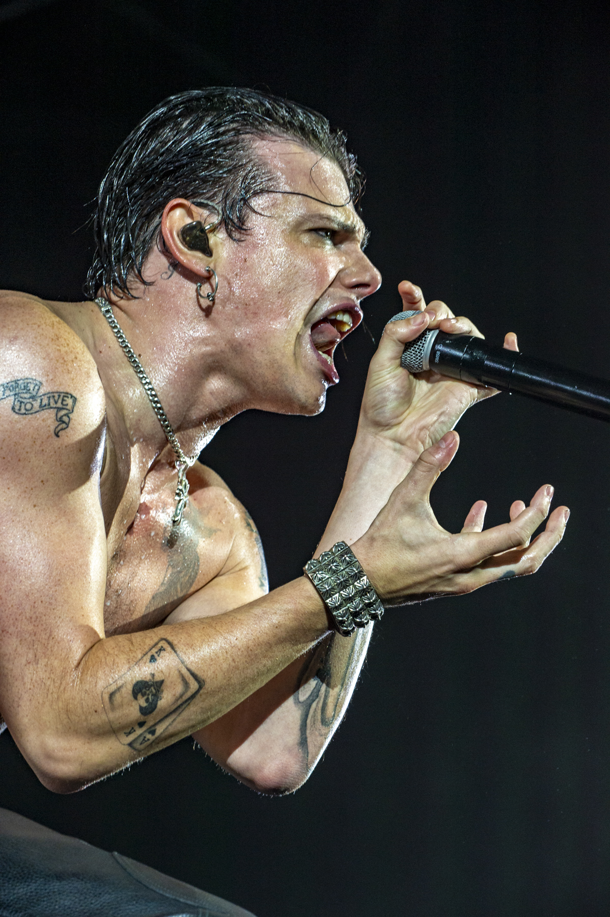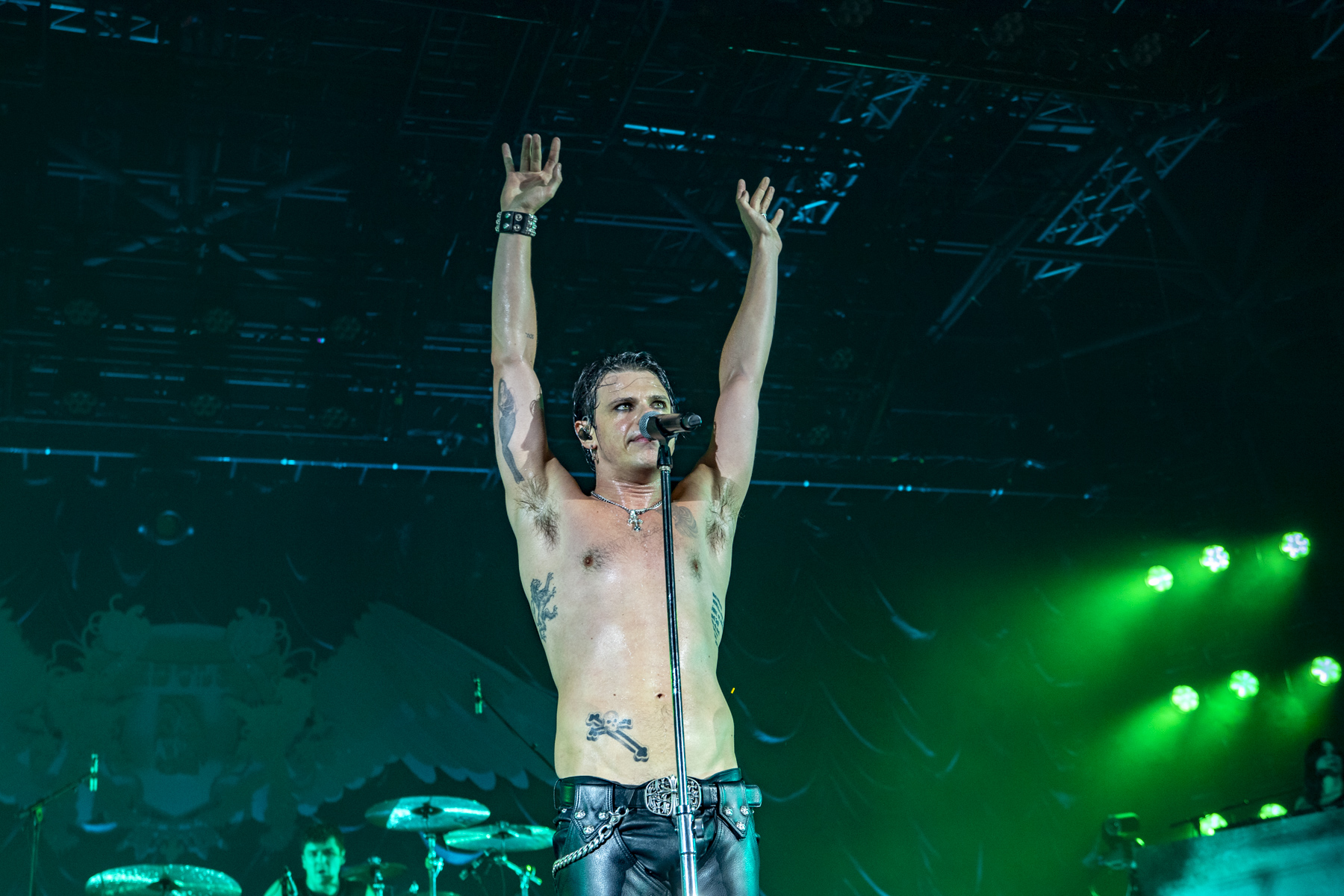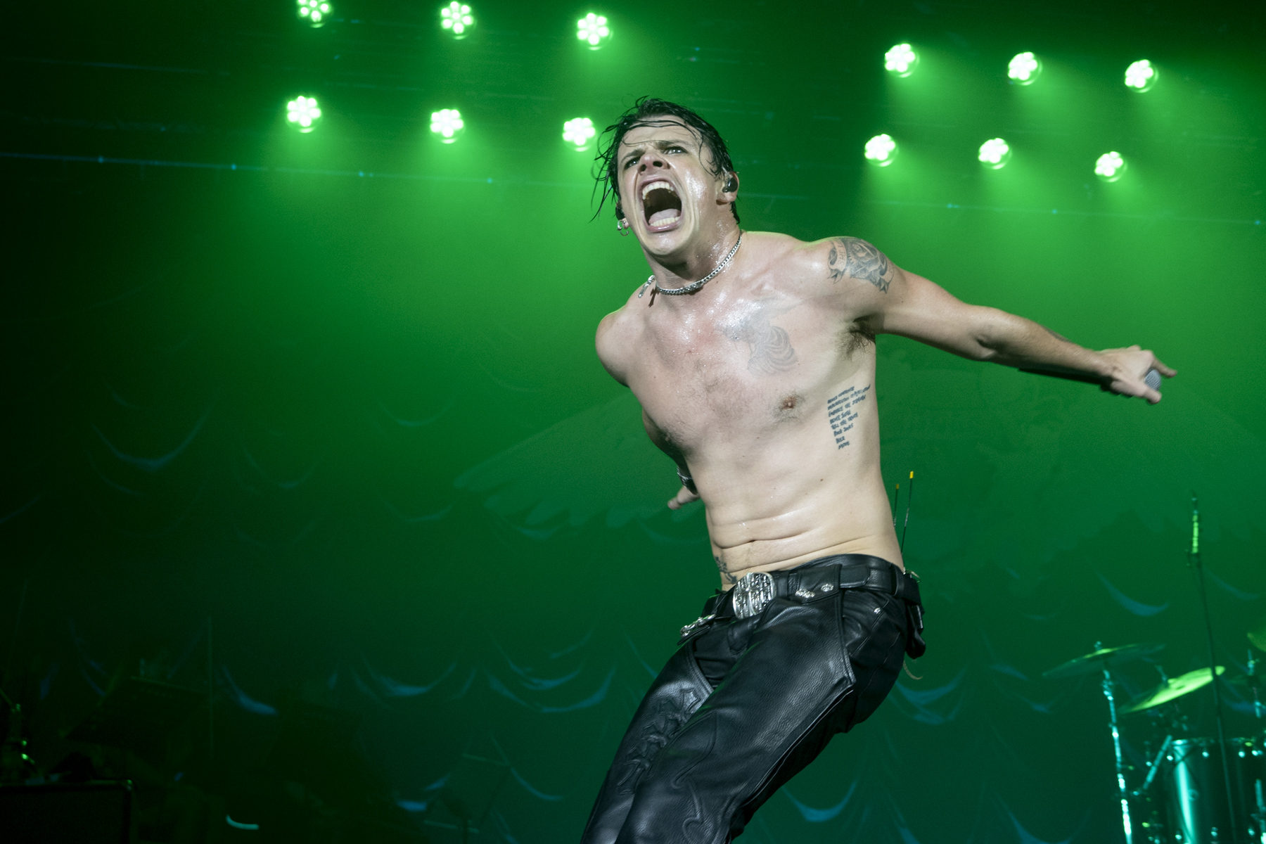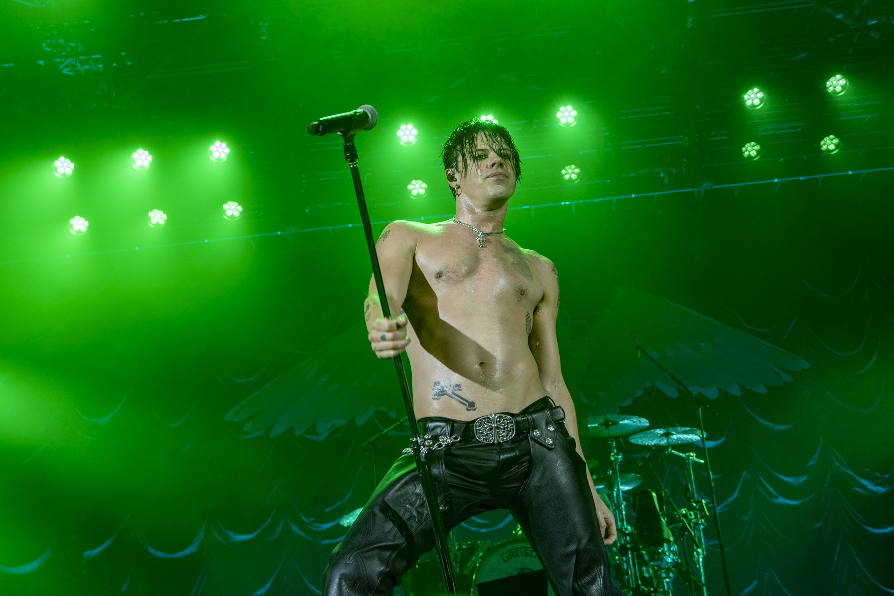 Direkt im Anschluss um 19:45 Uhr betraten Palaye Royale die Bühne und zündeten sofort ein Feuerwerk an Glam-Rock-Energie. Mit Songs wie „Mister Devil“ und „Death or Glory“ versprühten die drei Kanadier ein provokantes, charmantes Chaos, das die Fans im Handumdrehen in Bewegung brachte. Sänger Remington Leith legte sich mit ausdrucksstarker Bühnenpräsenz und extrovertierten Bewegungen ins Zeug, während die Gitarrenriffs und treibenden Drums den Sound der Band perfekt untermalten. Höhepunkte wie „No Love in LA“ und „Addicted to the Wicked & Twisted“ zeigten die Vielseitigkeit der Band: Mal brachial, mal verspielt, immer unterhaltsam und nah am Publikum. Die Show war ein starker Auftakt, der die Energie für den Abend setzte und die Halle schon frühzeitig in Wallung brachte.