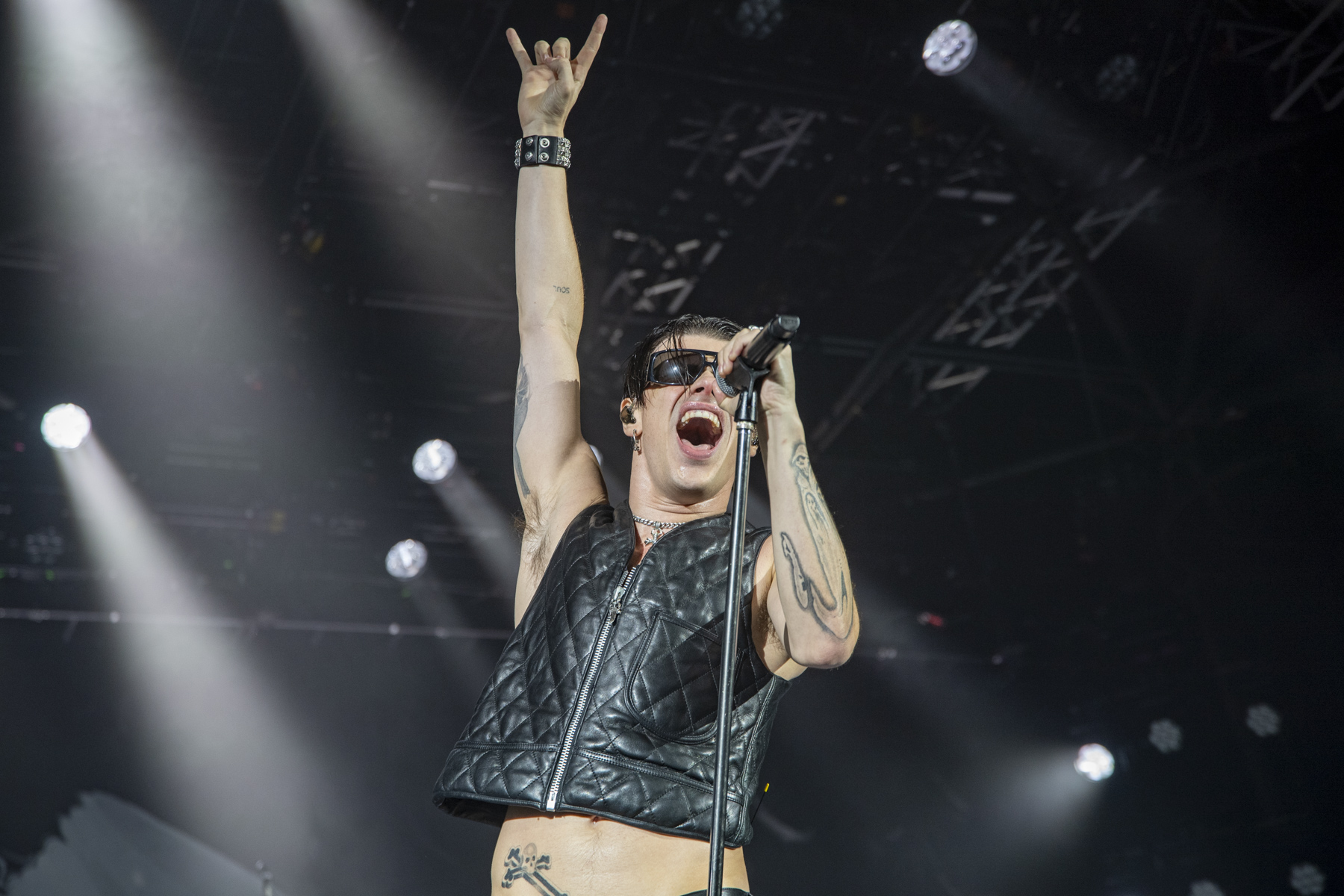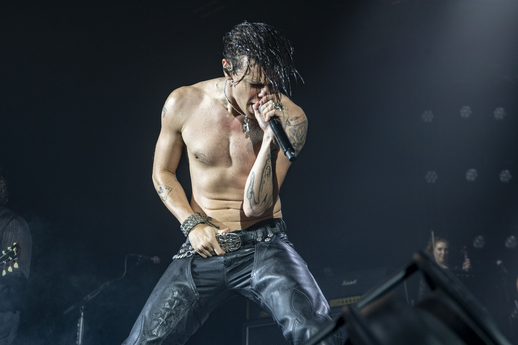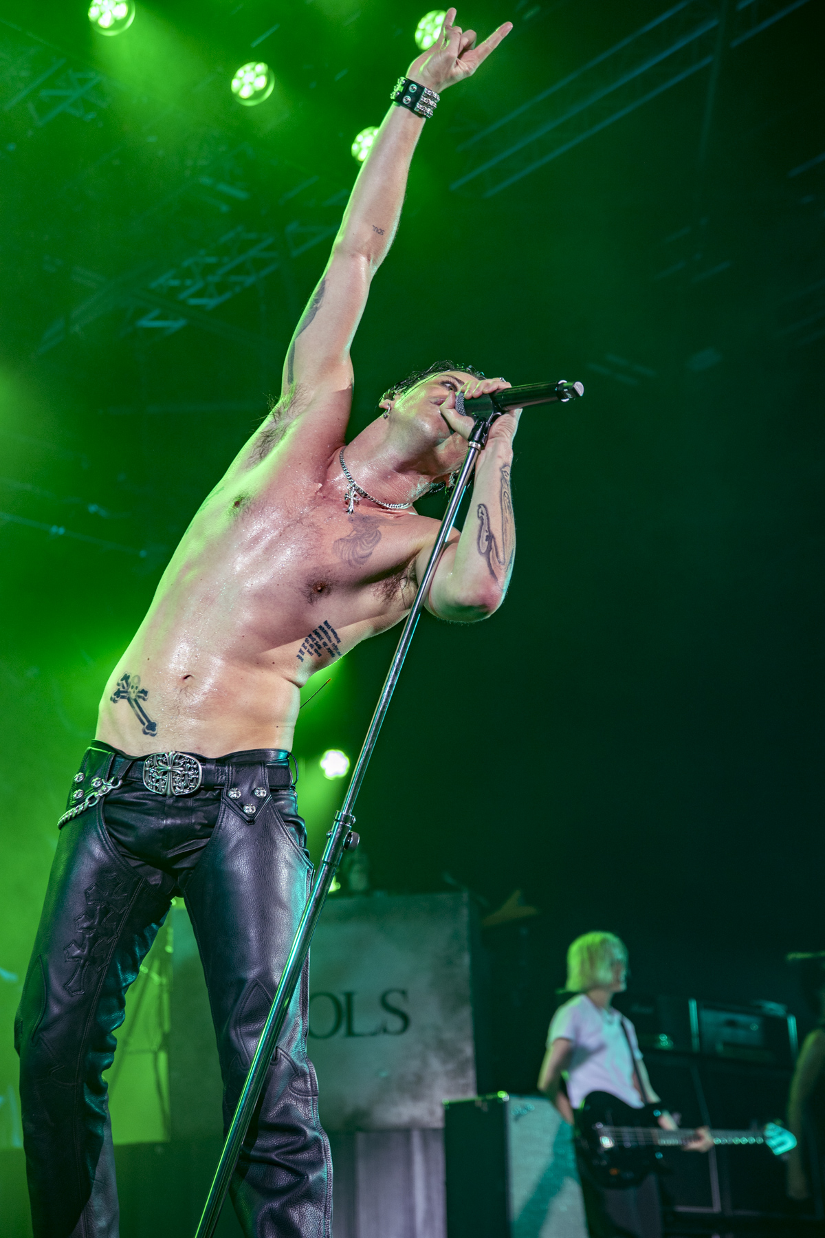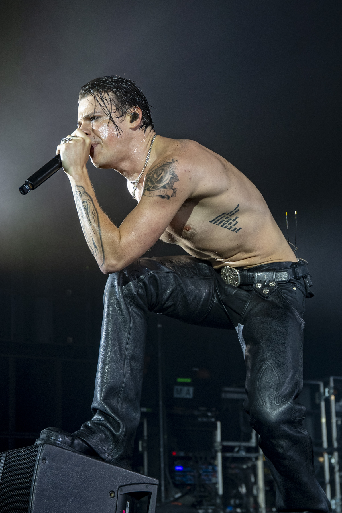 Direkt im Anschluss um 19:45 Uhr betraten Palaye Royale die Bühne und zündeten sofort ein Feuerwerk an Glam-Rock-Energie. Mit Songs wie „Mister Devil“ und „Death or Glory“ versprühten die drei Kanadier ein provokantes, charmantes Chaos, das die Fans im Handumdrehen in Bewegung brachte. Sänger Remington Leith legte sich mit ausdrucksstarker Bühnenpräsenz und extrovertierten Bewegungen ins Zeug, während die Gitarrenriffs und treibenden Drums den Sound der Band perfekt untermalten. Höhepunkte wie „No Love in LA“ und „Addicted to the Wicked & Twisted“ zeigten die Vielseitigkeit der Band: Mal brachial, mal verspielt, immer unterhaltsam und nah am Publikum. Die Show war ein starker Auftakt, der die Energie für den Abend setzte und die Halle schon frühzeitig in Wallung brachte.