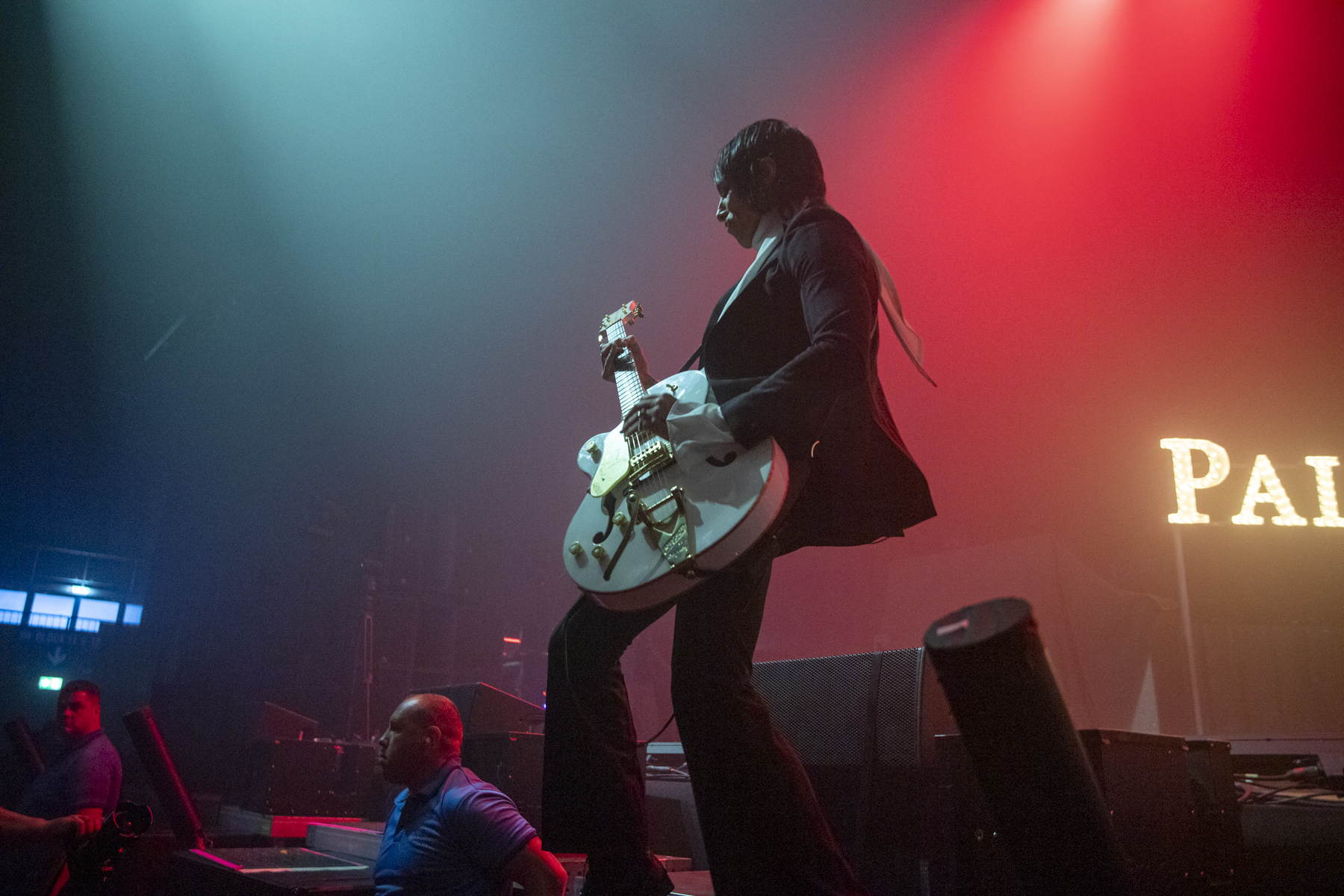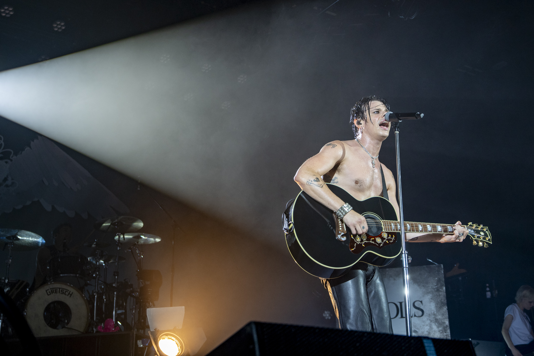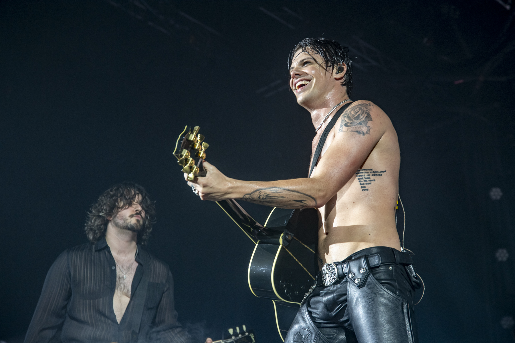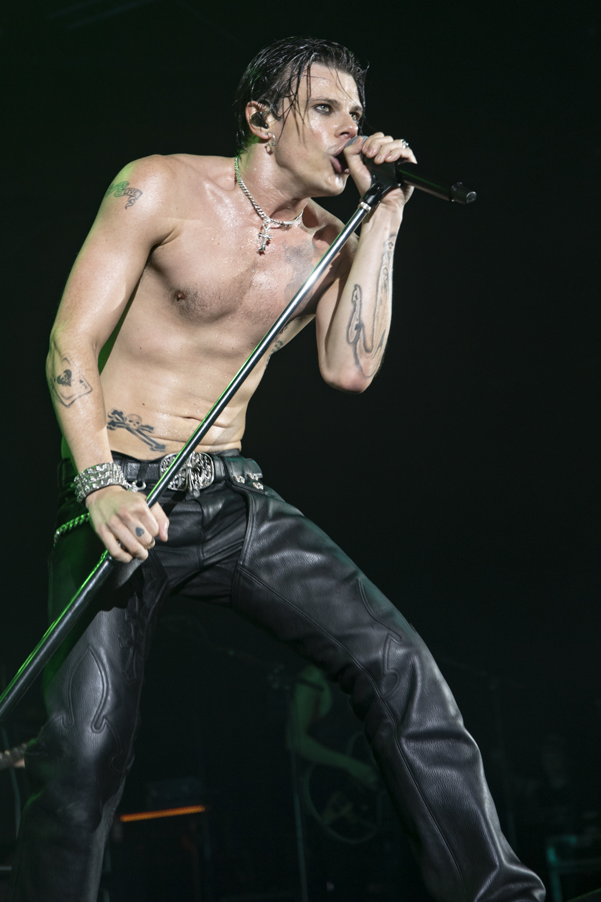 Direkt im Anschluss um 19:45 Uhr betraten Palaye Royale die Bühne und zündeten sofort ein Feuerwerk an Glam-Rock-Energie. Mit Songs wie „Mister Devil“ und „Death or Glory“ versprühten die drei Kanadier ein provokantes, charmantes Chaos, das die Fans im Handumdrehen in Bewegung brachte. Sänger Remington Leith legte sich mit ausdrucksstarker Bühnenpräsenz und extrovertierten Bewegungen ins Zeug, während die Gitarrenriffs und treibenden Drums den Sound der Band perfekt untermalten. Höhepunkte wie „No Love in LA“ und „Addicted to the Wicked & Twisted“ zeigten die Vielseitigkeit der Band: Mal brachial, mal verspielt, immer unterhaltsam und nah am Publikum. Die Show war ein starker Auftakt, der die Energie für den Abend setzte und die Halle schon frühzeitig in Wallung brachte.