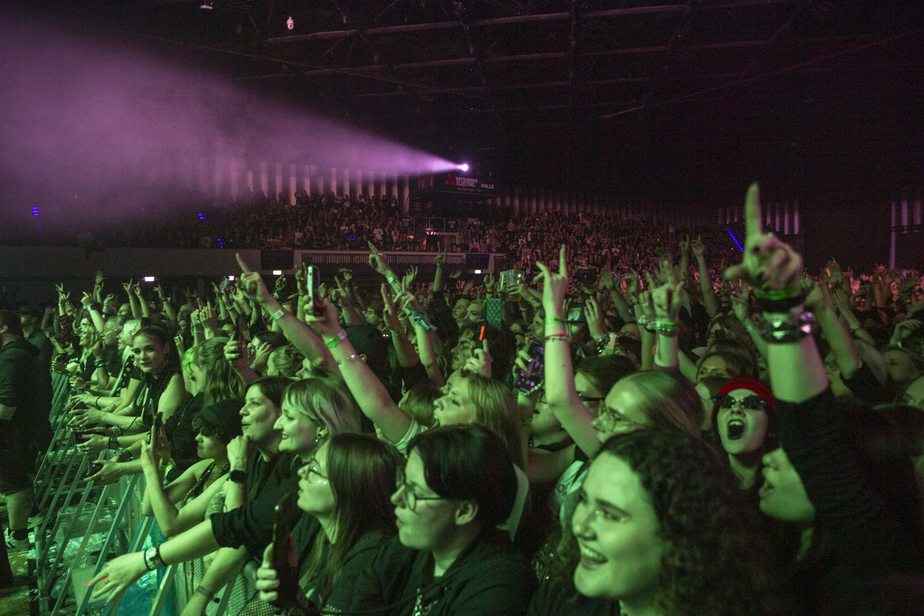 Um 19:00 Uhr übernahmen Weathers die Bühne. Mit ihrer Mischung aus Indie-Rock, Pop-Punk und emotional aufgeladenen Balladen trafen sie genau den Nerv des Publikums. Hits wie „Happy Pills“ und „I’m Not Ok“ wurden sofort mitgesungen, während ihr Cover von My Chemical Romances „Famous Last Words“ ein besonders intensives Echo im Saal erzeugte. Sänger Cameron Boyer überzeugte mit leidenschaftlicher Stimme und charmanter Nähe zum Publikum, während die Band musikalisch tight und kraftvoll agierte. Mit jedem Song wuchs die Vorfreude auf Yungblud, doch Weathers sorgten dafür, dass die Halle bereits jetzt kochte und die Fans sich vollkommen in die Musik fallen lassen konnten.